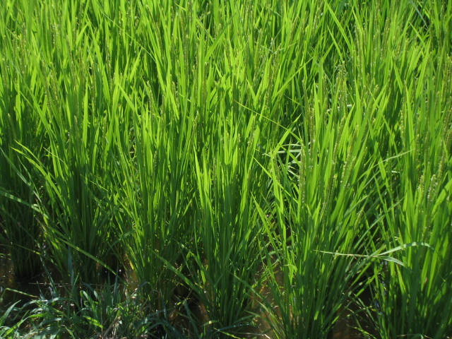 ヒノヒカリはほぼ出穂、にこまるは4〜5日遅れています。