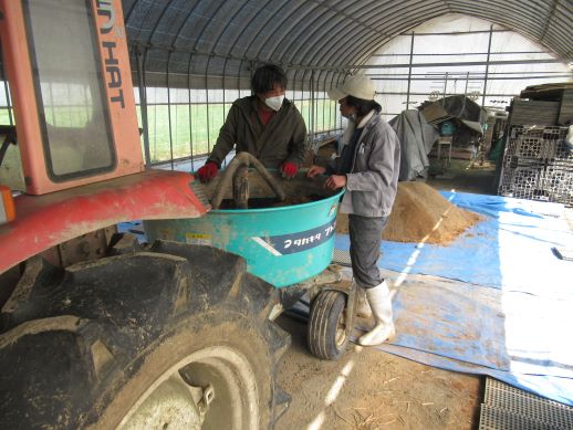 2カ月位堆積しておき、播種する前に袋詰めにします。