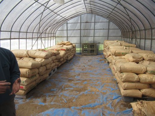 そのあと2カ月位堆積しておき、播種する前に袋詰めにします。