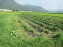 急遽、電柵設置:畔の草刈り、ポール立て、電線張り、本体接続。1人で丸一日かかりました。