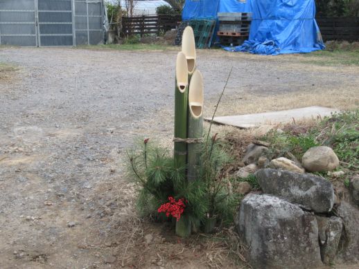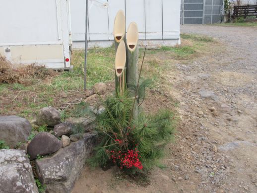 今年の豊作、家内安全、無病息災を祈って、敷地の入口に門松を立てました。