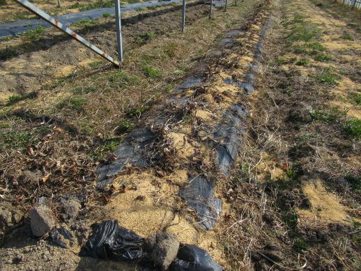 根が張る雑草が生えてきて、何度も切るのが面倒なので、籾殻を厚く掛けました。