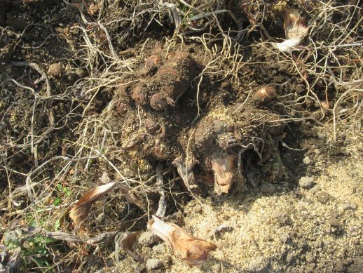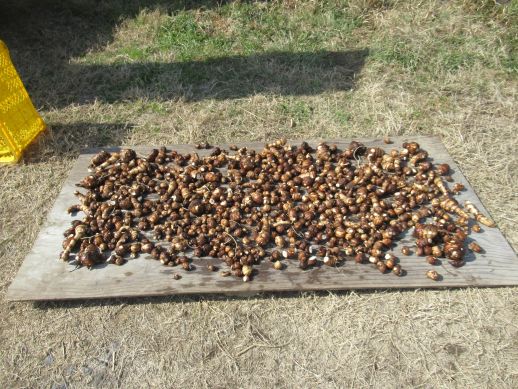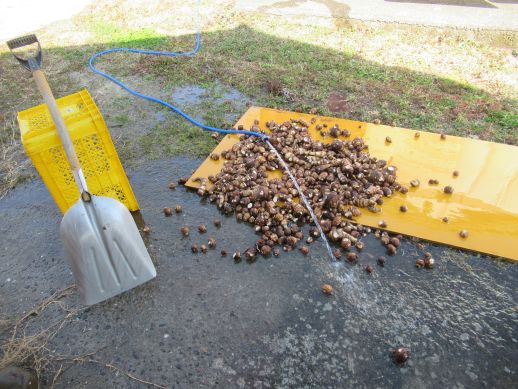 白いもの親芋は食べないので、次作の種芋にするため土を被せて保存します。