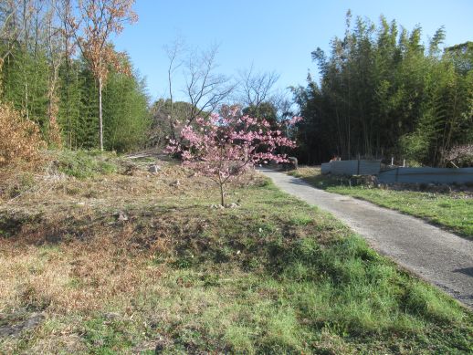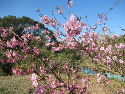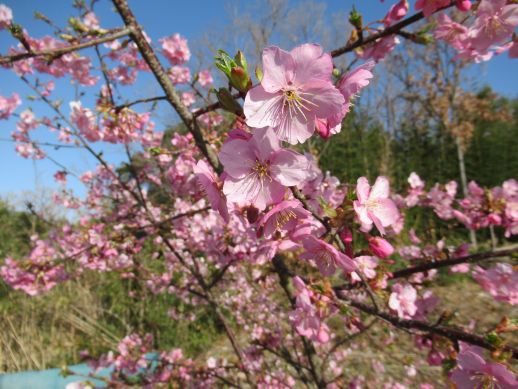 家の近くの丘の上に、戦争で亡くなられた方を慰霊する招魂場があり、河津桜が満開になりました。